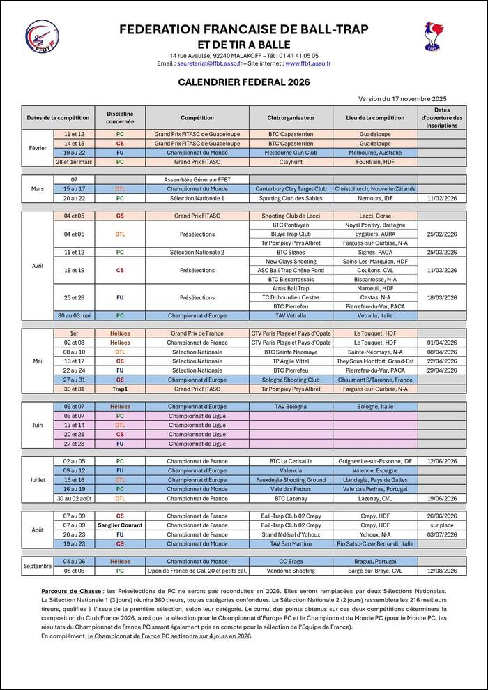 Vous pourrez télécharger le calendrier sportif FFBT/TITASC 2026 en cliquant dans le bouton au bas de la rubrique.